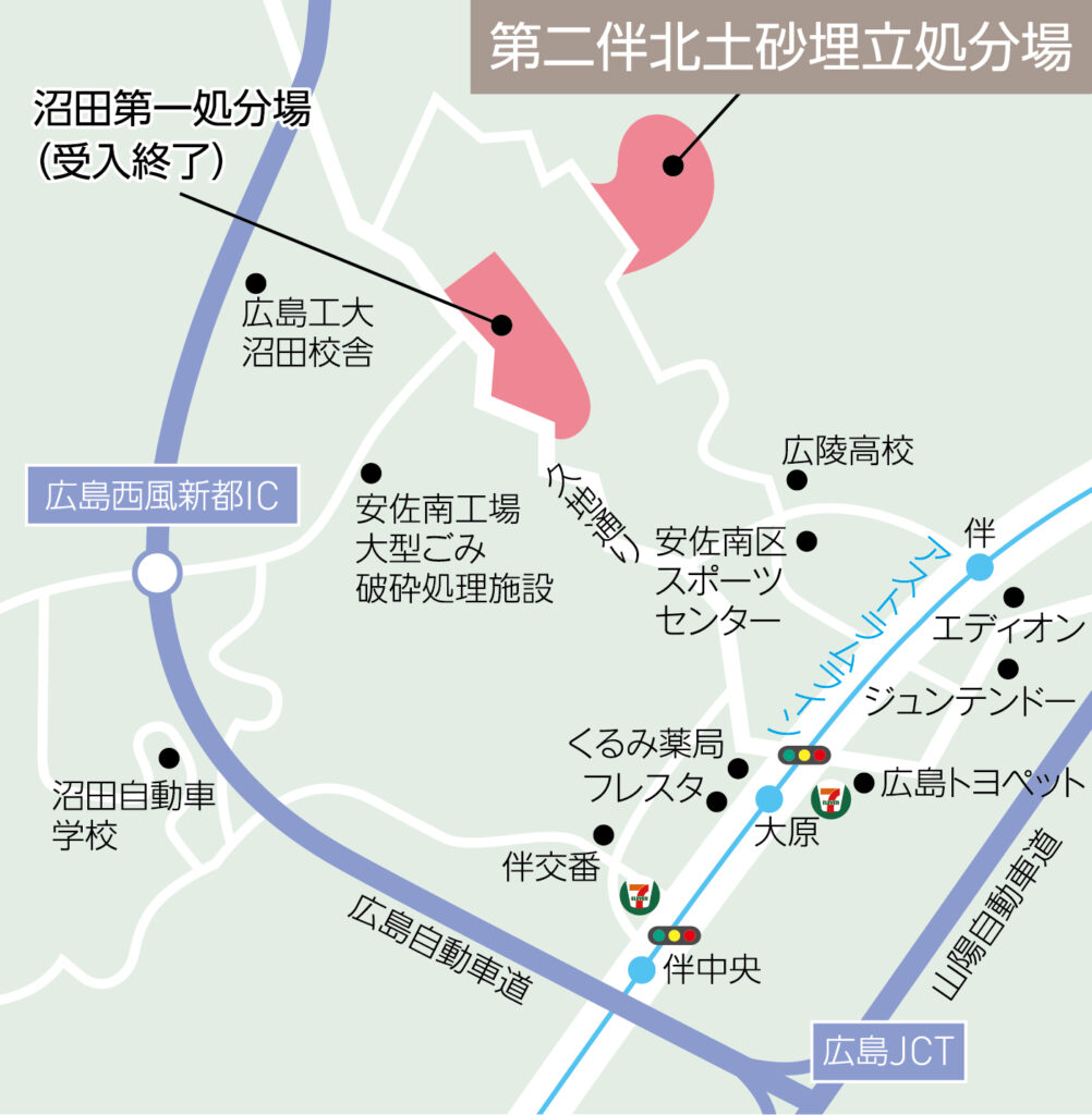 終了した沼田処分場の近隣に、前処分場を上回る受入土量合計220万㎥の受入れ可能な処分場を開設。広島市内の公共、民間建設工事向け重要インフラとして、市内最大級の建設発生土受け入れ事業を稼働中。